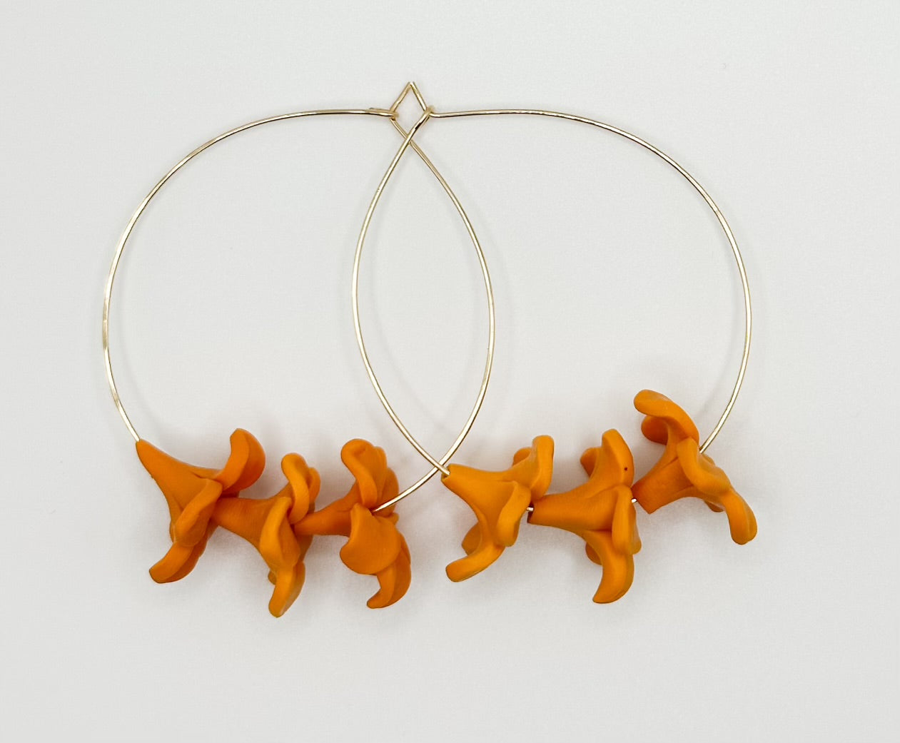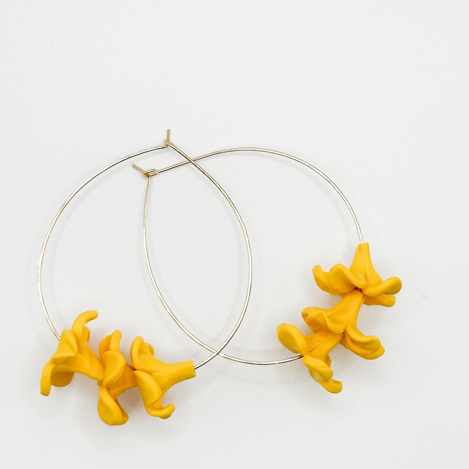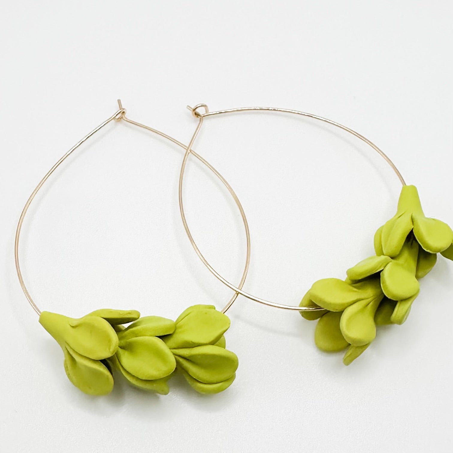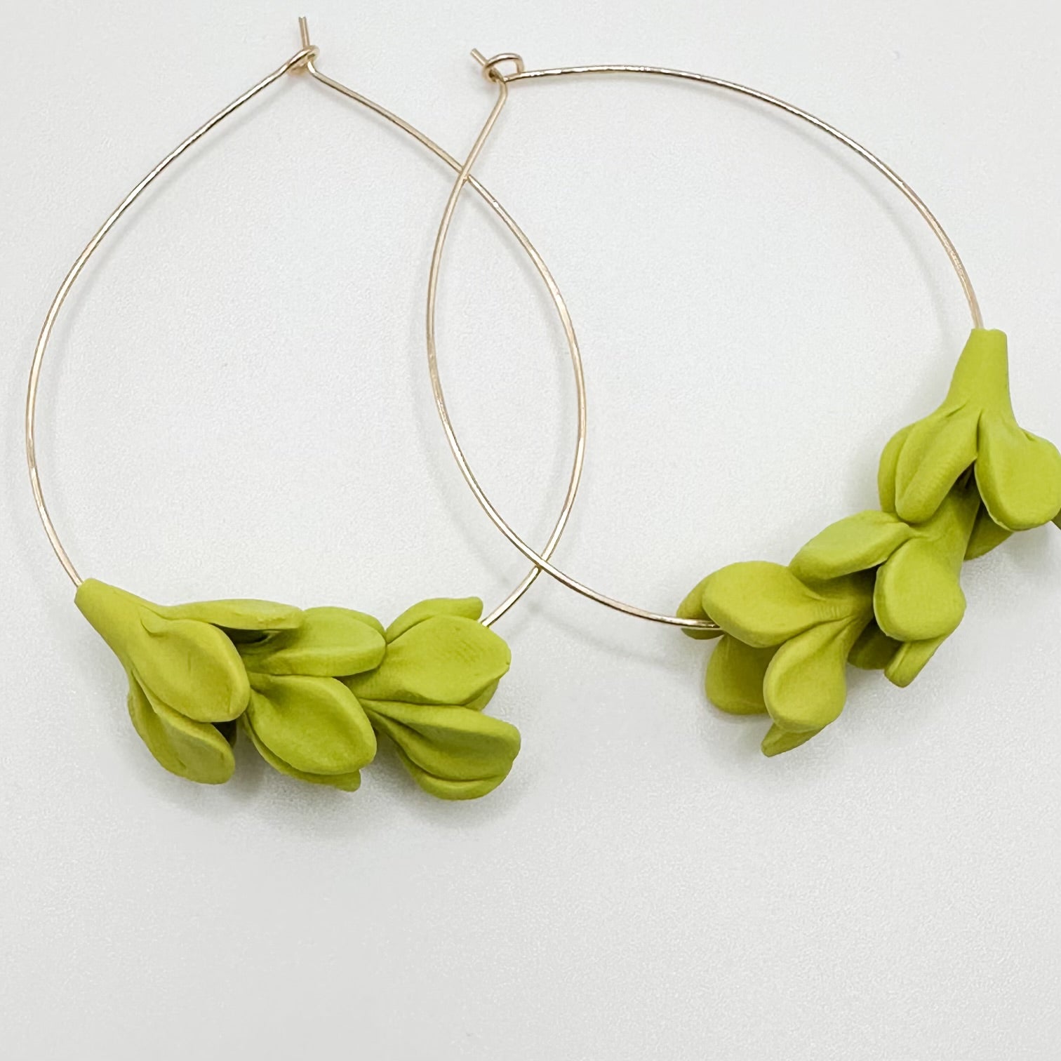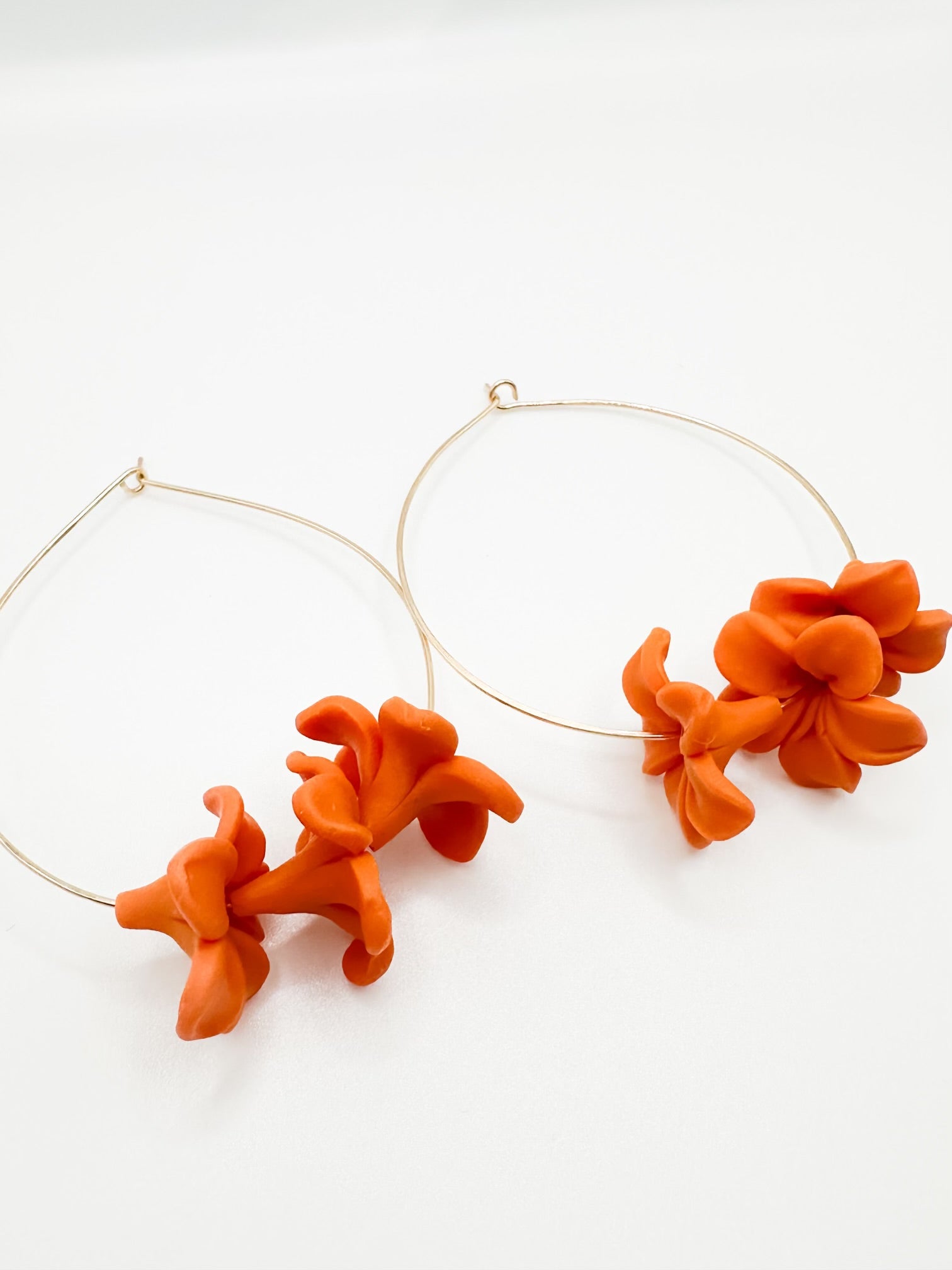 A different take on the traditional hoop earring, these teardrops are lightweight and classy. Each earring includes three flowers of choice. Gold filled, 2.5" in length.