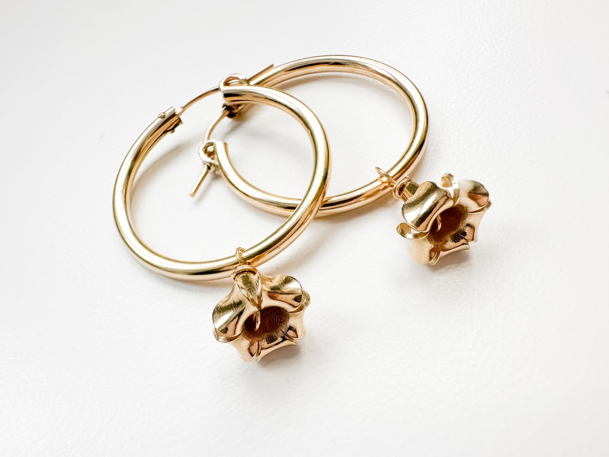 14K Gold Puakenikeni charm on 14K Gold or 14K Gold Filled Hoops