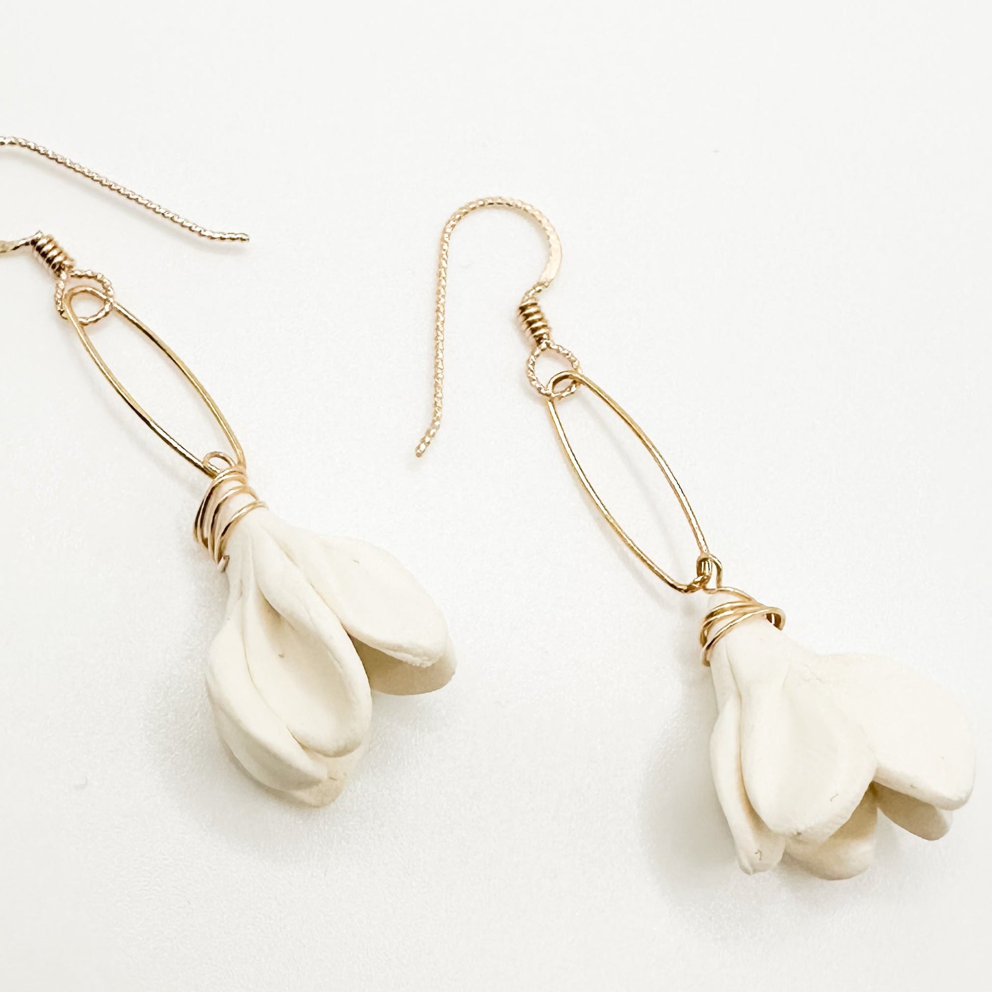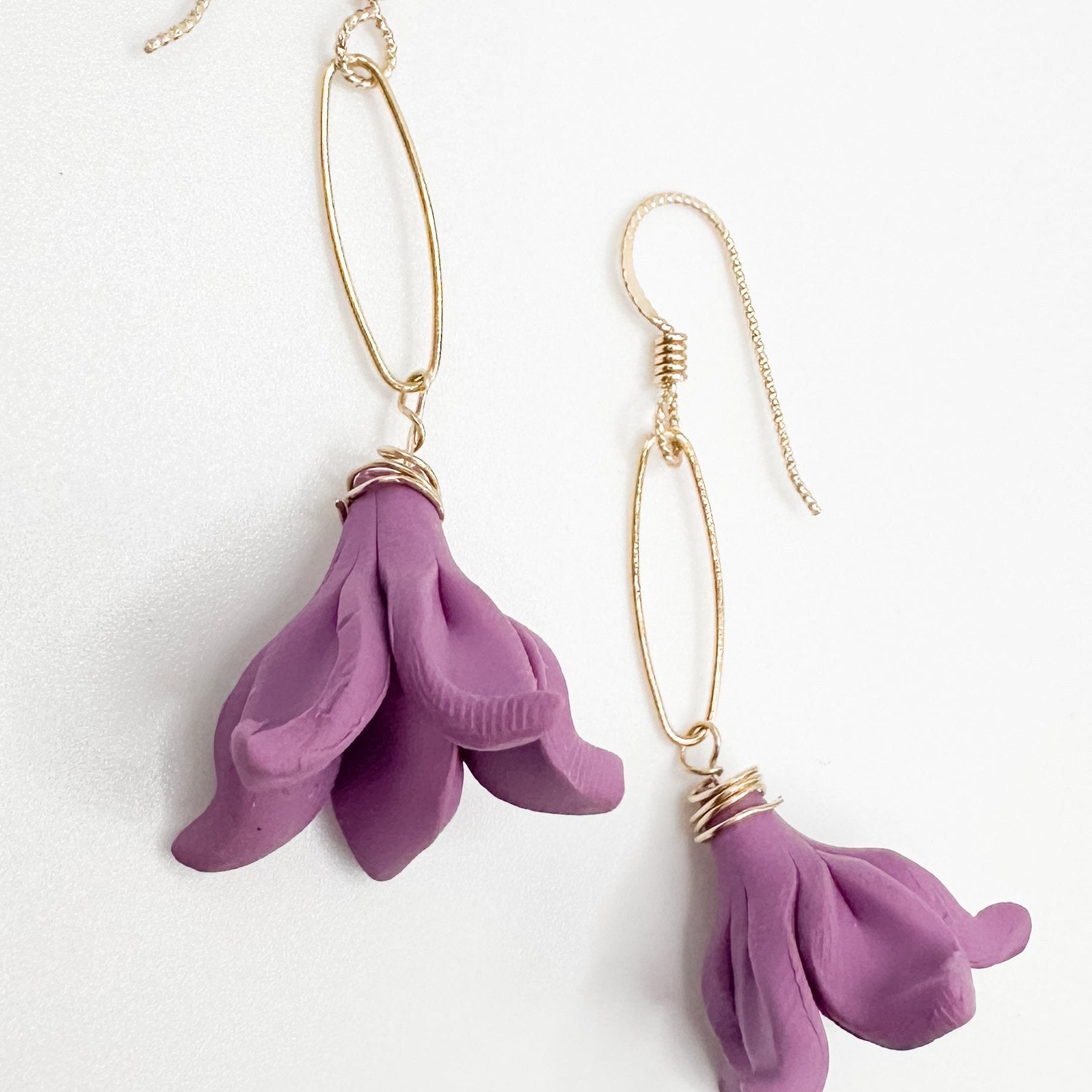 Add a touch of elegance to your wardrobe with our Fancy Single Drop Earring. Handmade with Hawaiian-inspired, delicately crafted polymer clay flowers, this earring is a unique and elegant addition to any outfit. Let the single flower dangle from your ear, a nod to the beauty and art of nature.