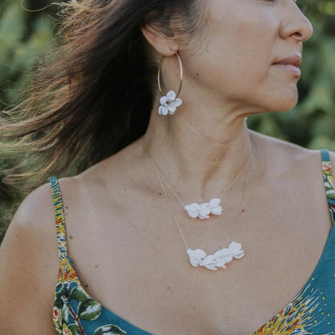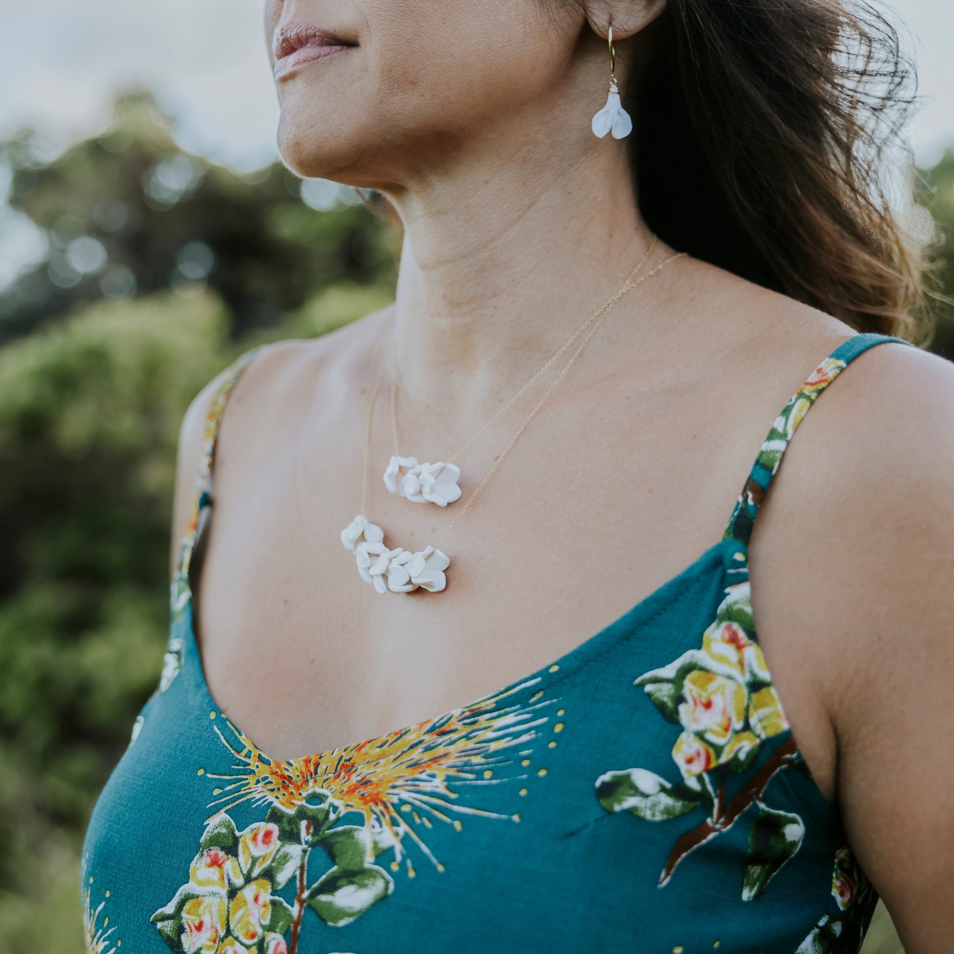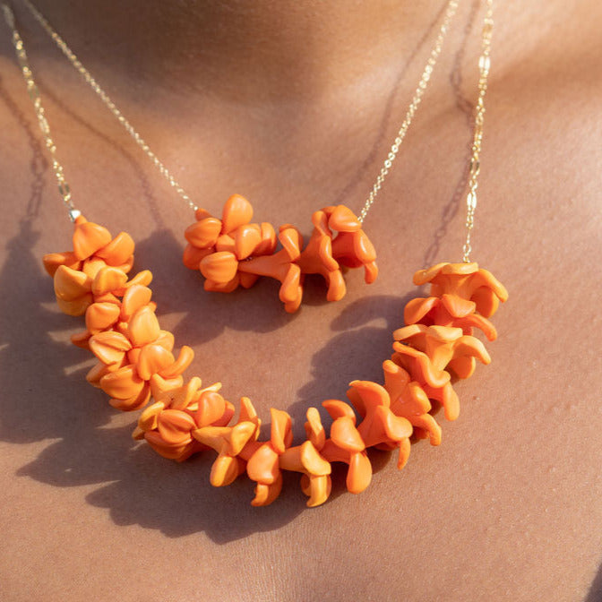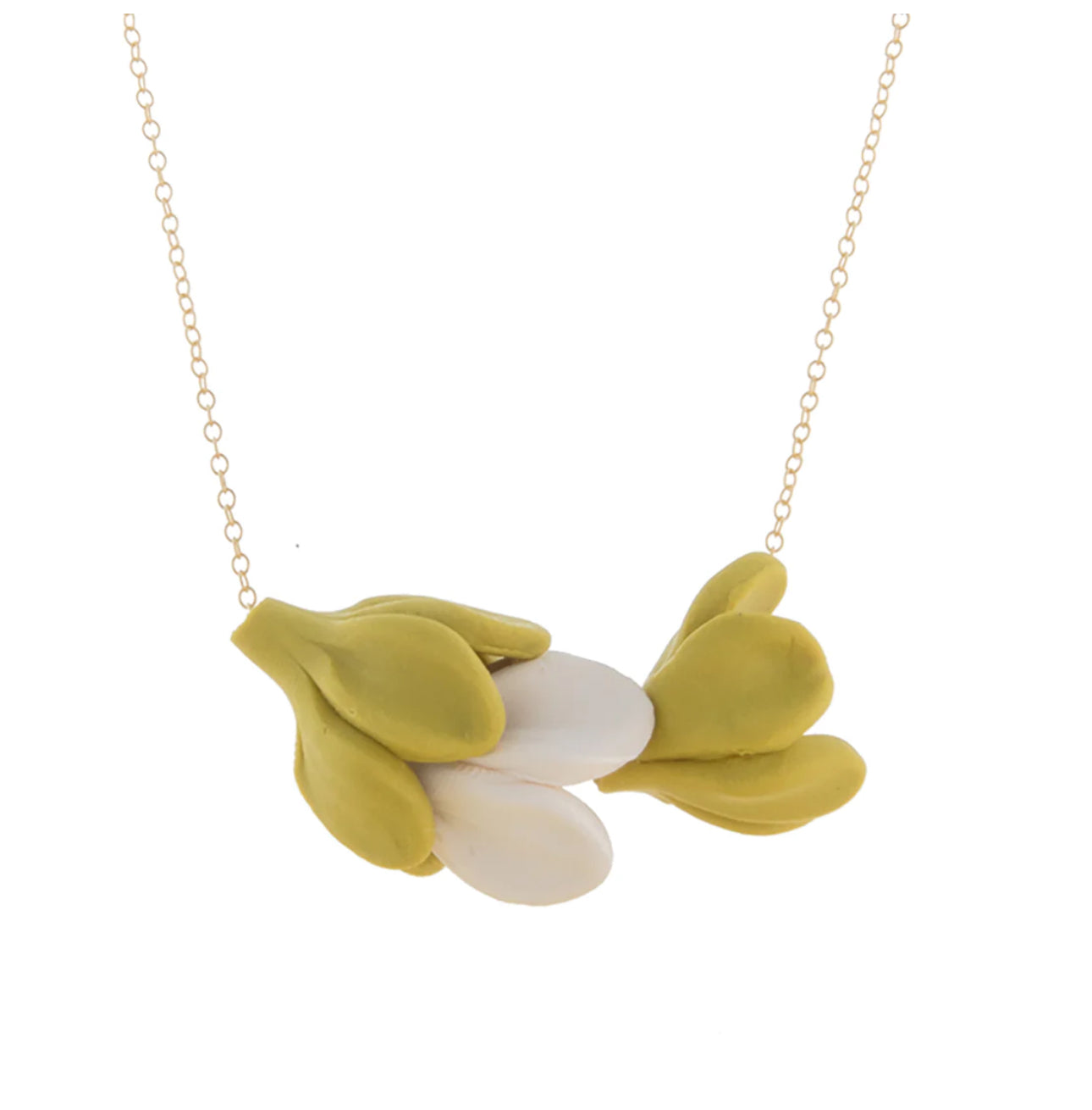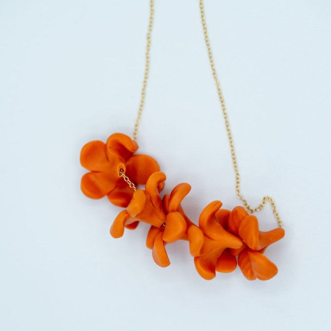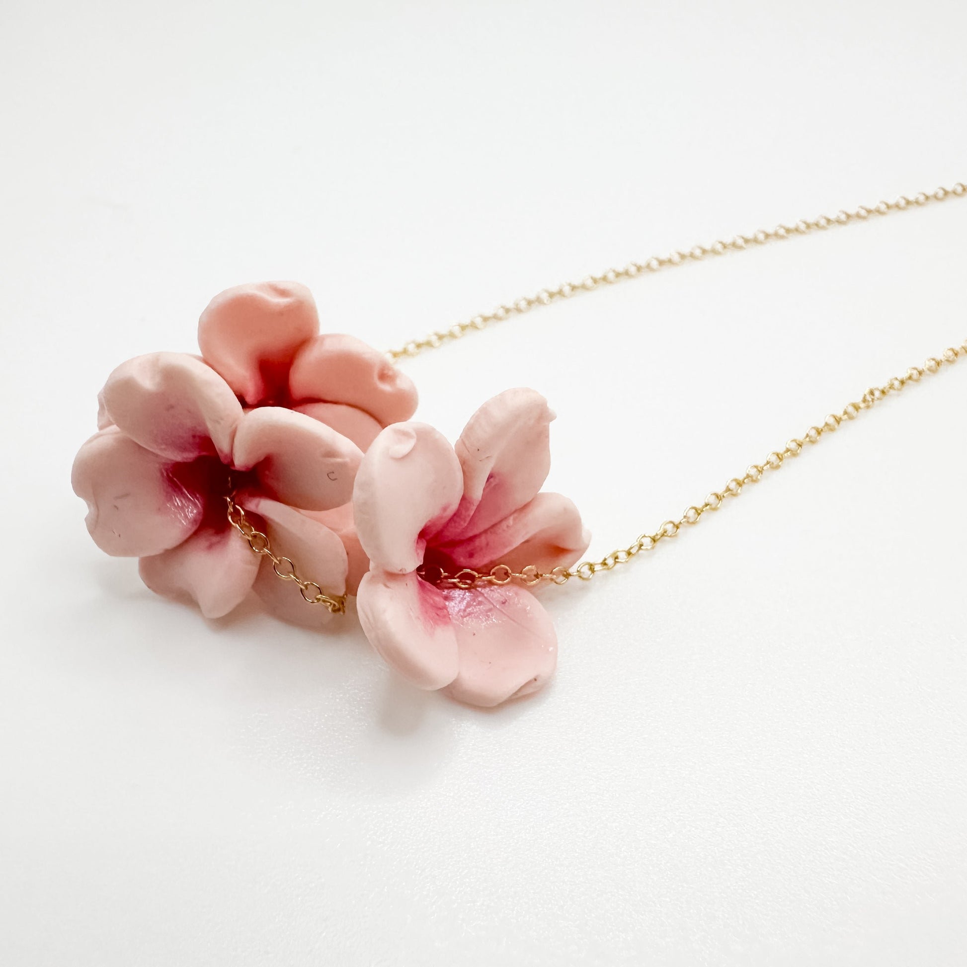 The floating flower necklace features 3 or 5 flowers floating on a 14K gold filled cable chain. This necklace adds the perfect pop of color to your favorite LBD. The flowers are handmade with Polymer clay. Total length 18".