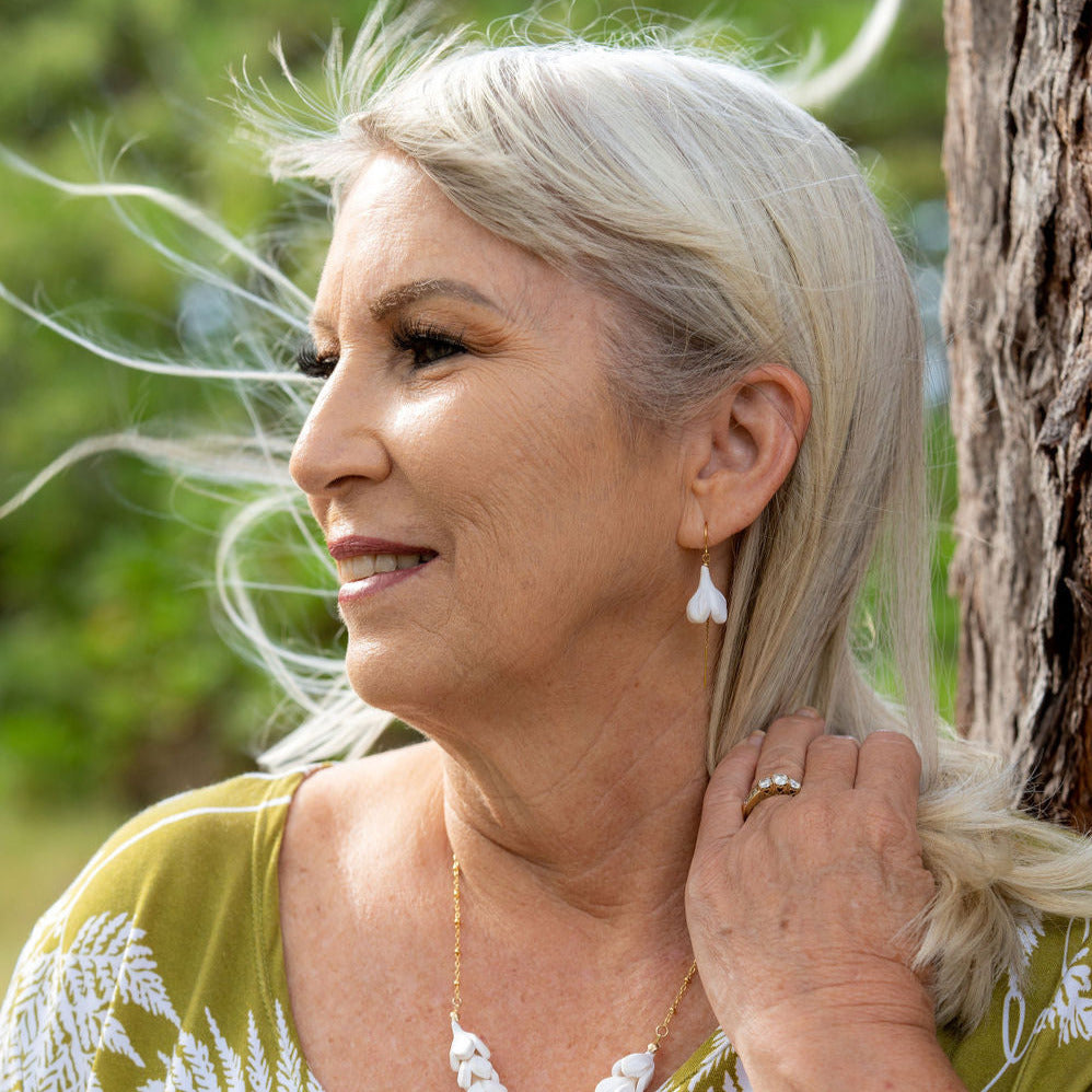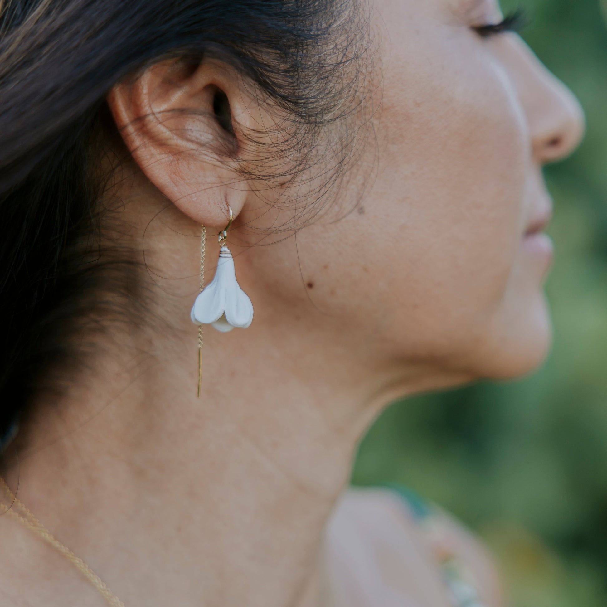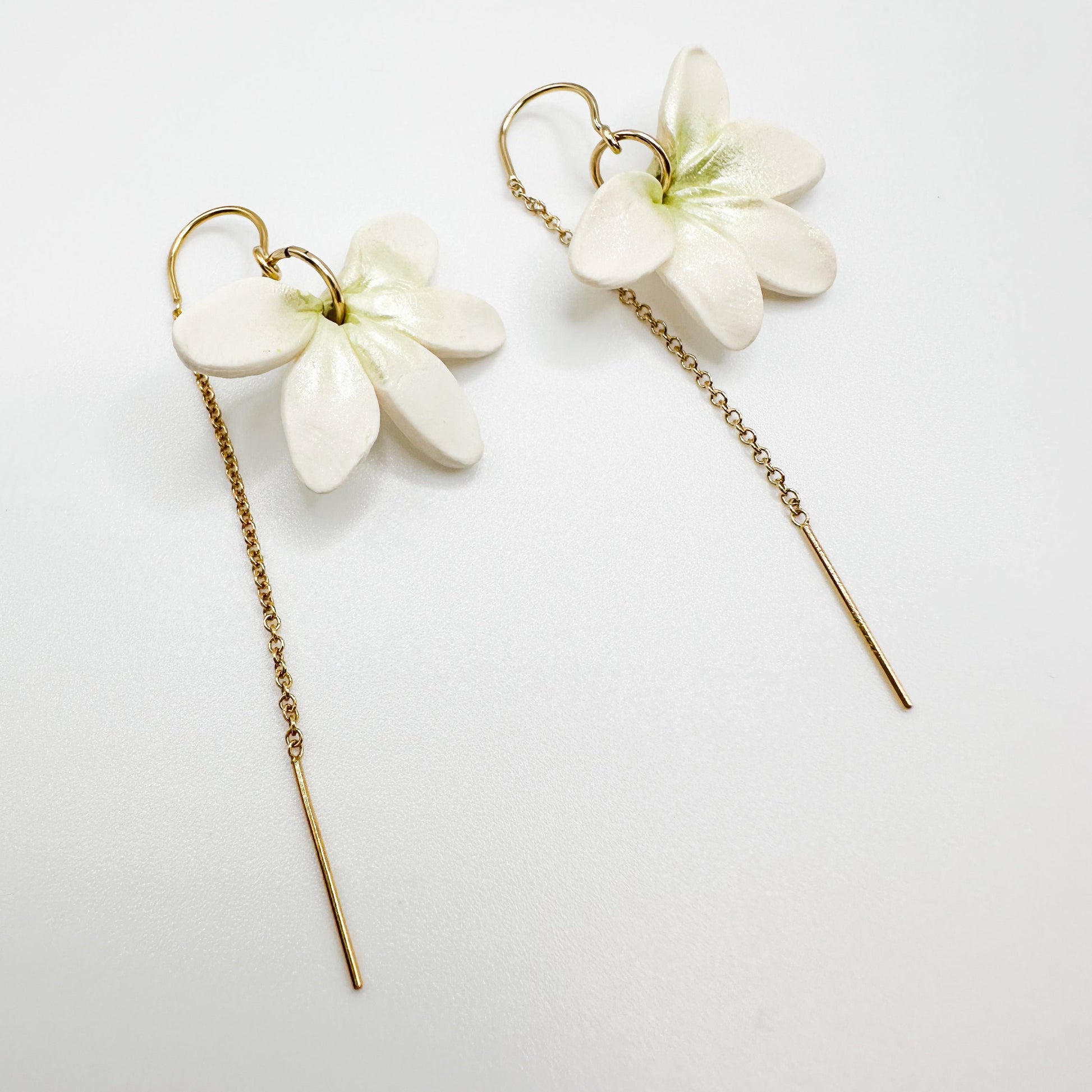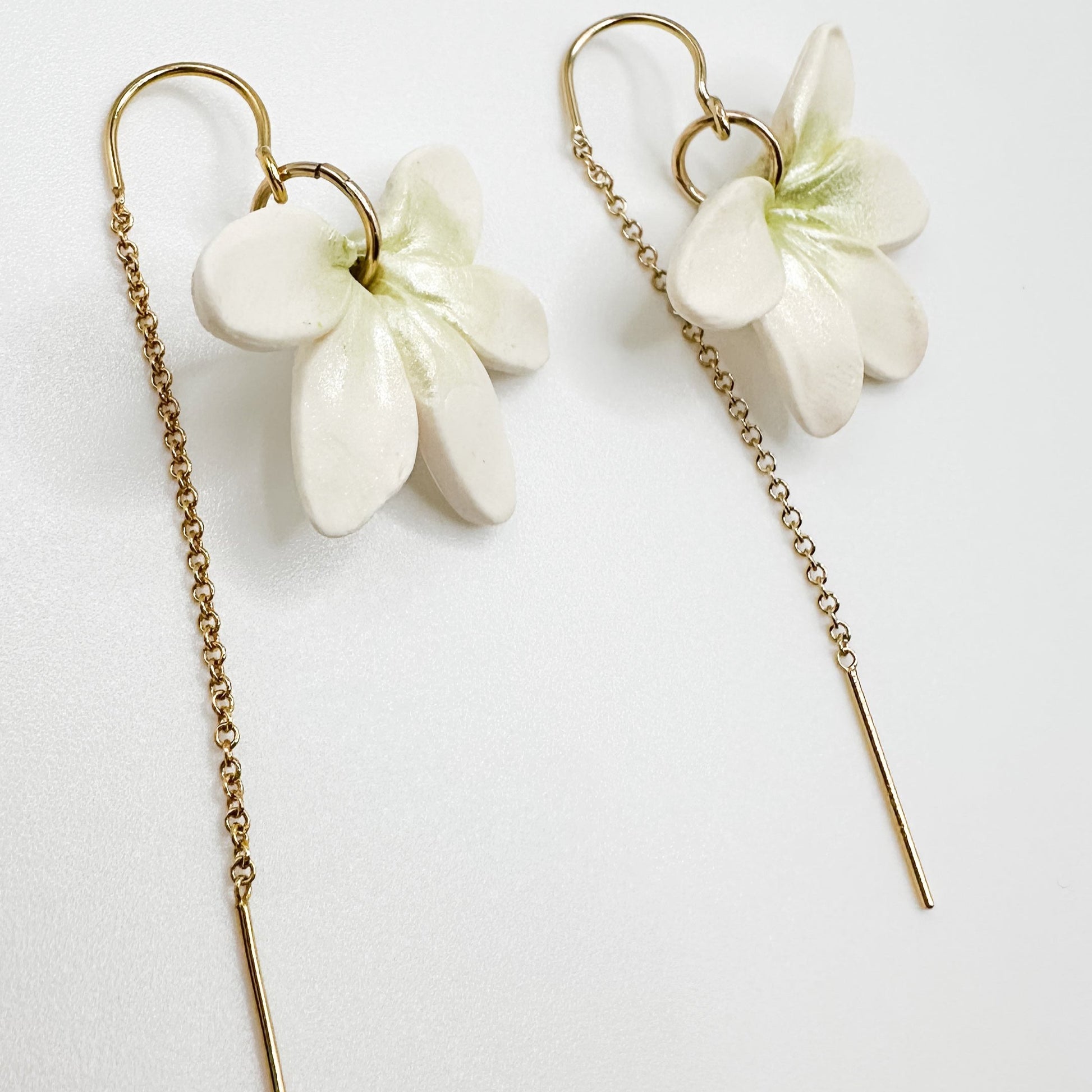 Threaders let your forever flowers hang in the spotlight. Smooth wire tips allow for easy threading through your earlobe. Seamless curved wire sits perfectly keeping your earrings in place and worry-free all day. 14K gold filled with handmade polymer clay flowers.