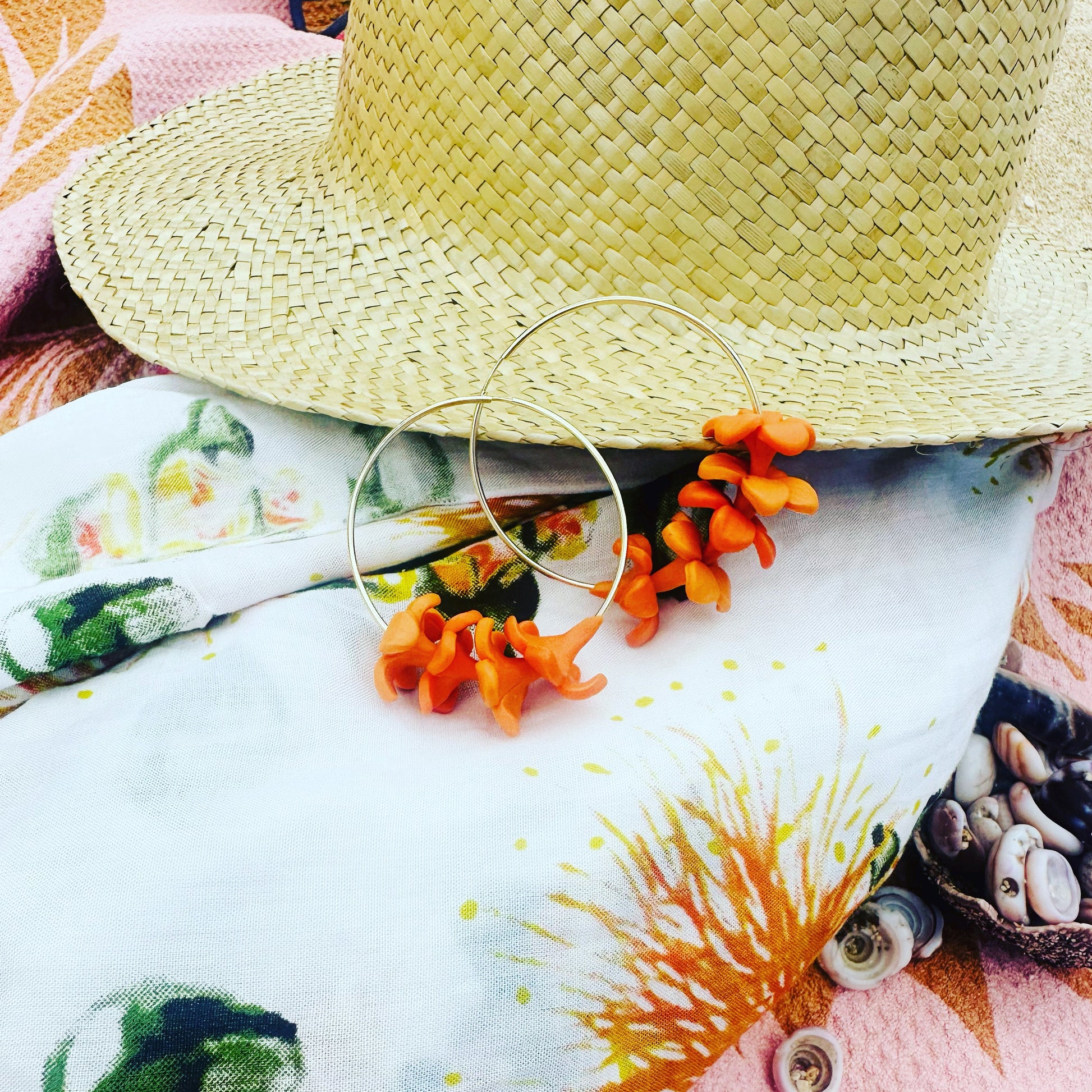 Beautiful earrings that will always remind me of my Hawaii vacation, love that I can change out the flowers on the hoops and have earrings to match a variety of outfits. Great for travel as I don’t have to pack several pairs of earrings. Flowers are beautiful, I want them in every color!