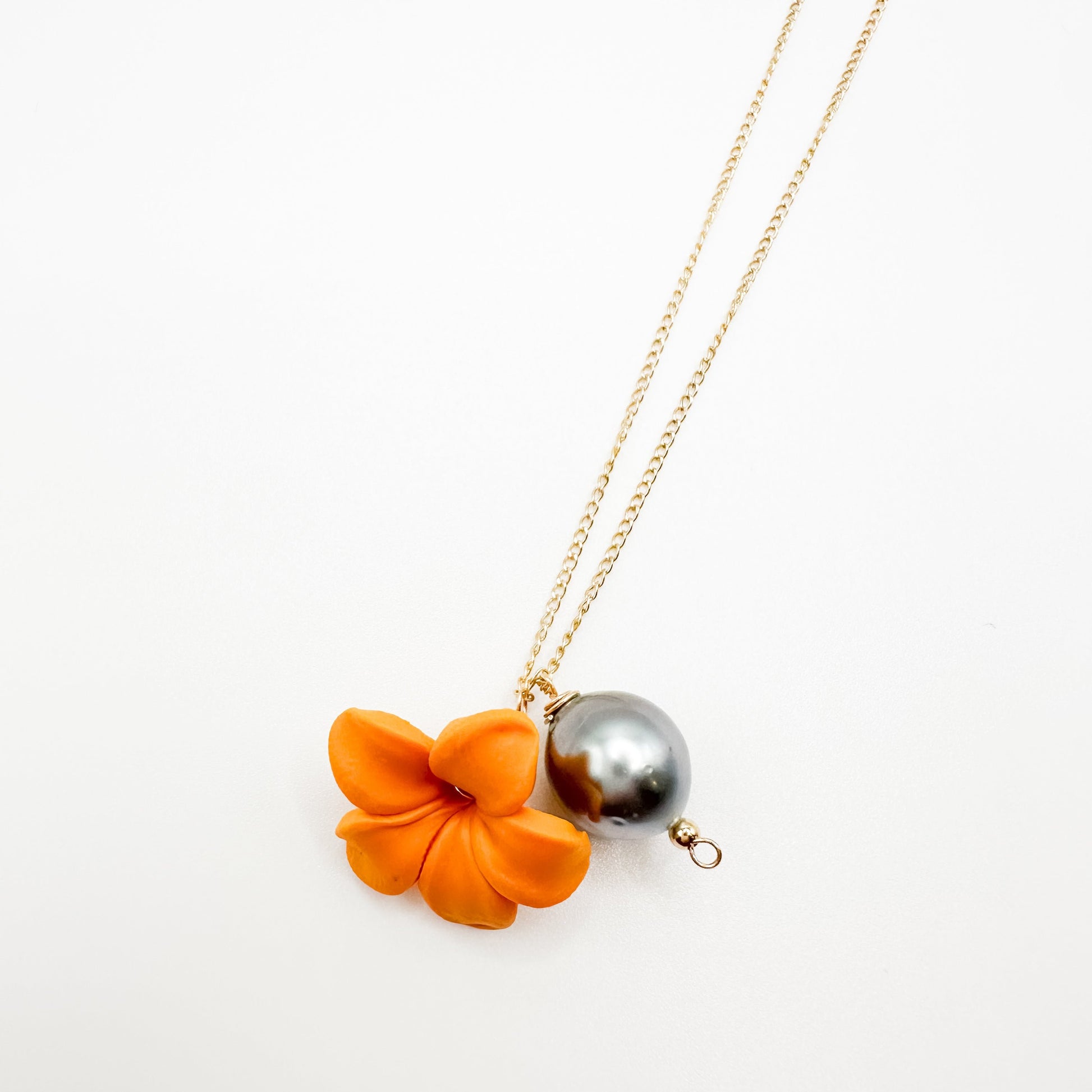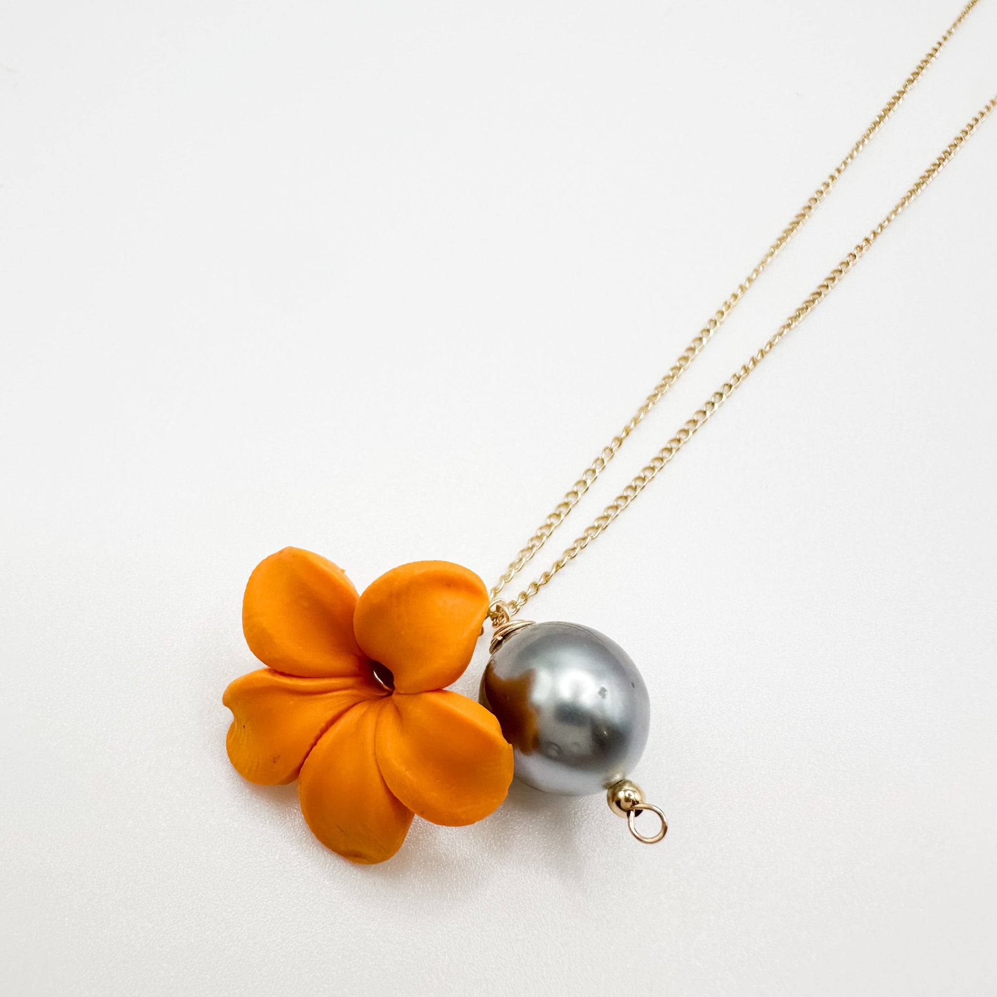 One flower + One Tahitian pearl on 14K Gold Filled Curbed Chain. 18"