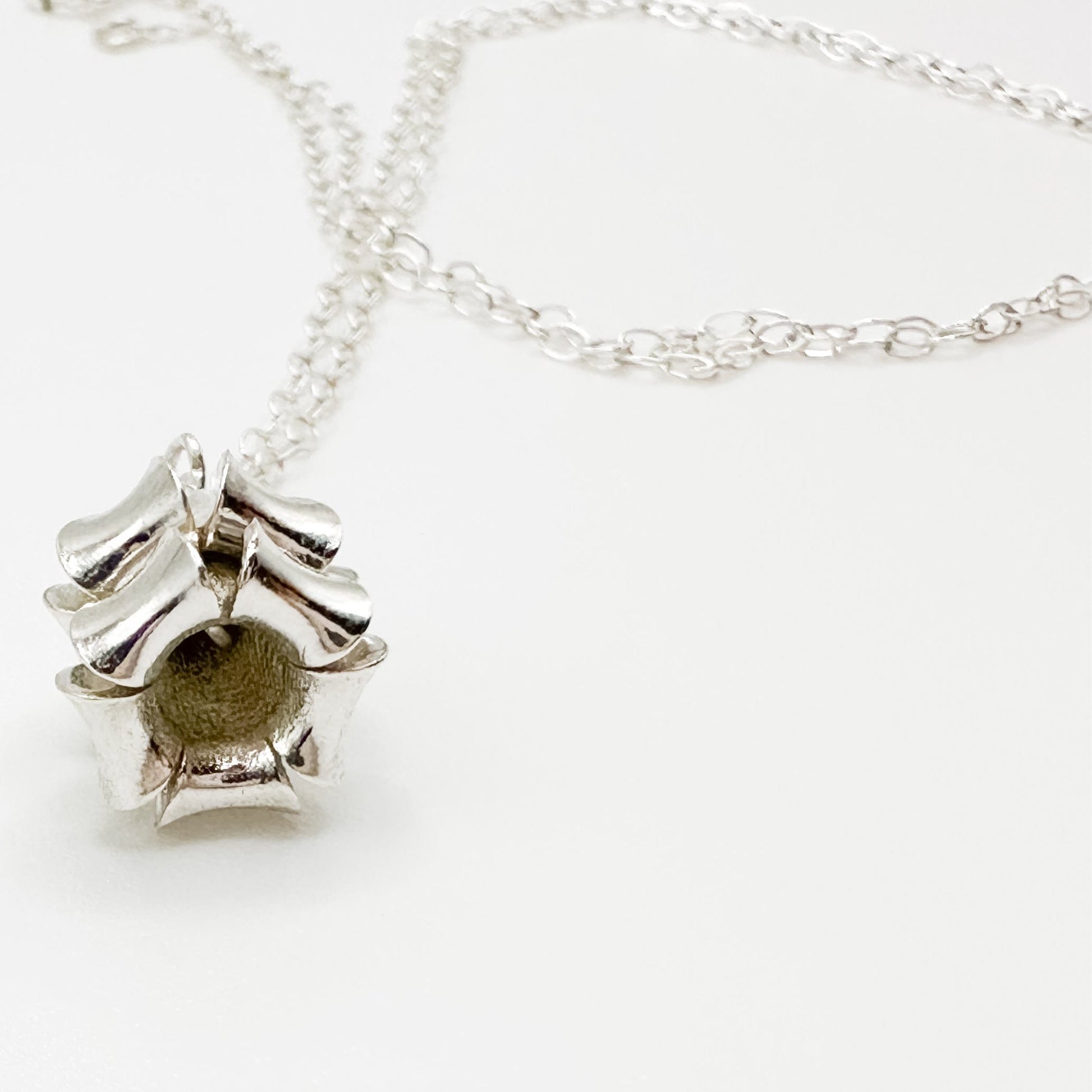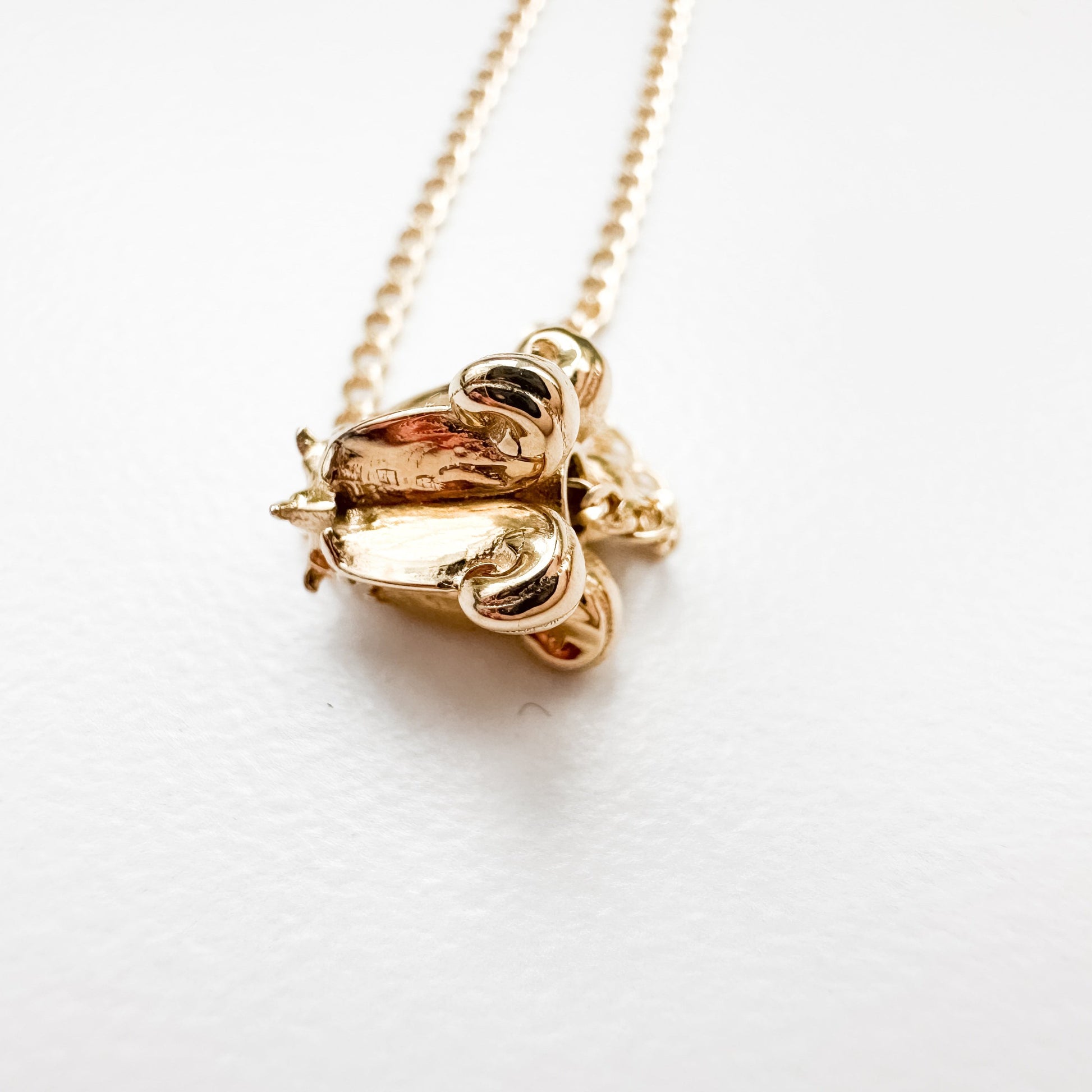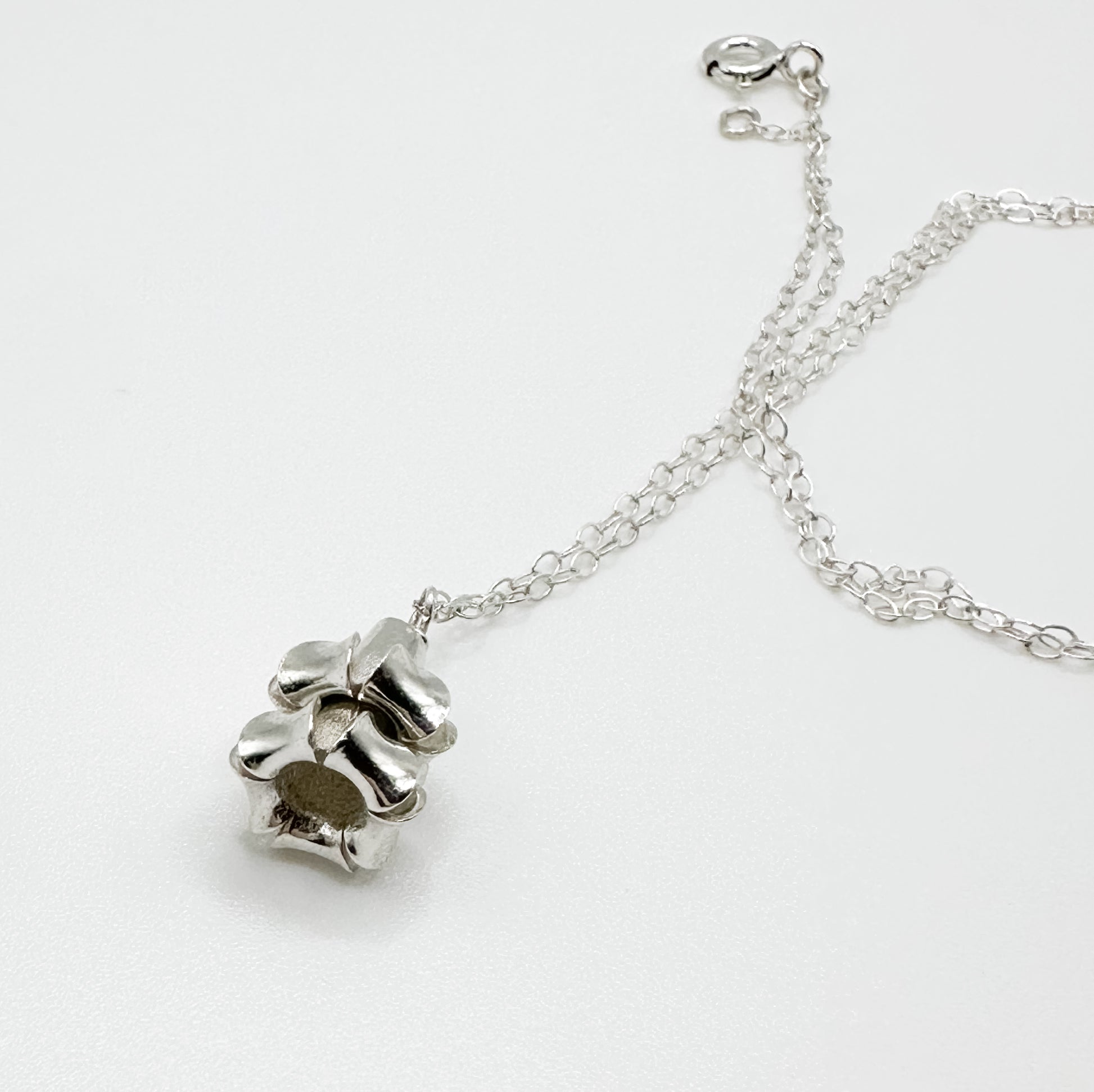 This piece was designed with the Puakenikeni flower as the inspiration. The design is 3D printed and casted in solid 14k gold or sterling silver. I work with a jewelry caster locally in Honolulu and all flowers are hand casted in his studio. Solid 14K gold or sterling silver pendant. Chains come in 16" or 18" 14K Gold or Gold Filled.