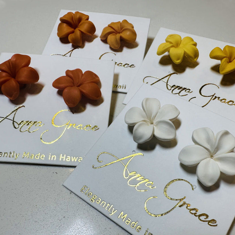The perfect match to your puakenikeni lei necklace is the coordinating earrings. Handmade polymer clay flowers on 14K gold filled findings.